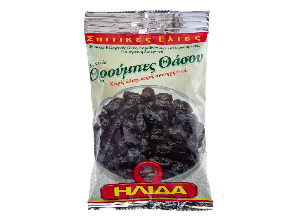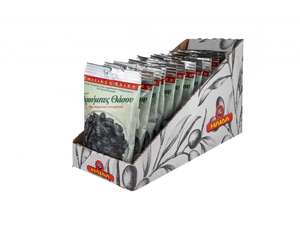 Olivy černé THASSOS s peckou sušené 12x200 g KARTON