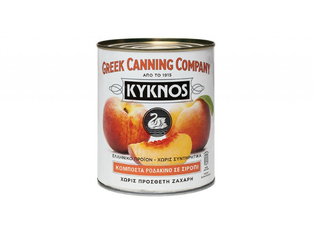 Složení: půlky broskví, voda, cukr, glukózo-fruktózový sirup. Regulátor kyselosti: kyselina citrónová. Hustota sirupu: 17-19%.