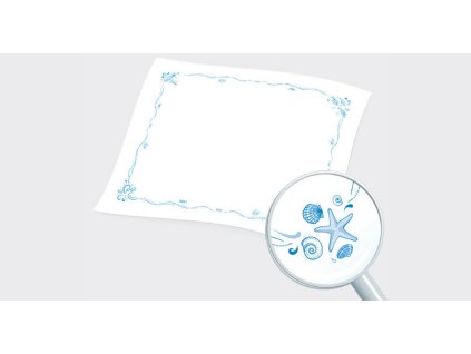 Papírový ubrus s mořským vzorem, zespodu opatřený nepropustnou fólií.